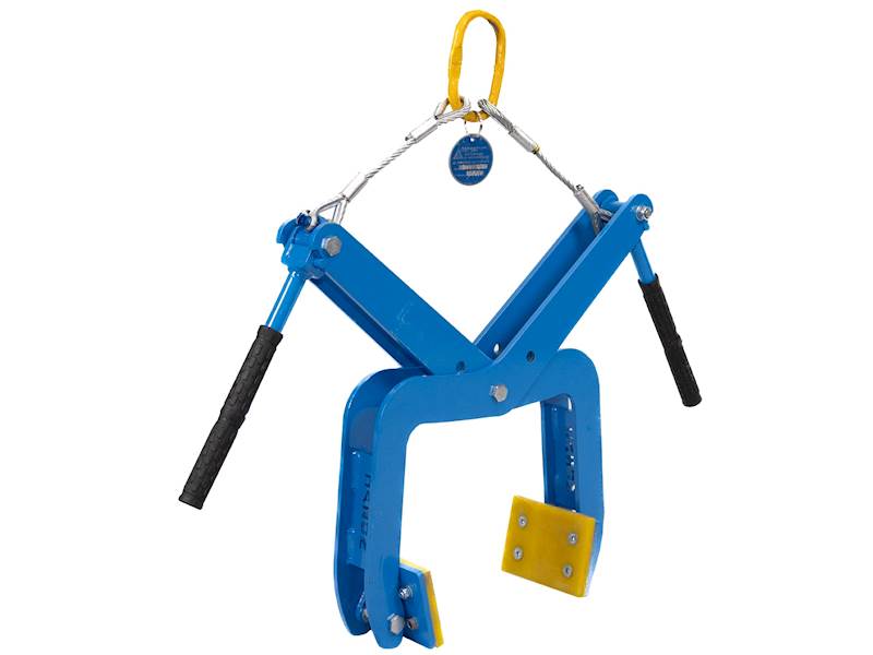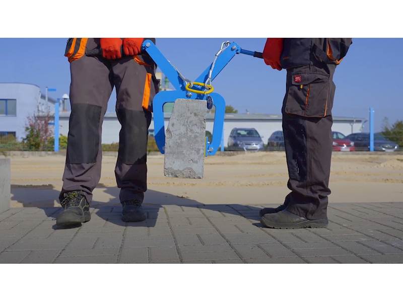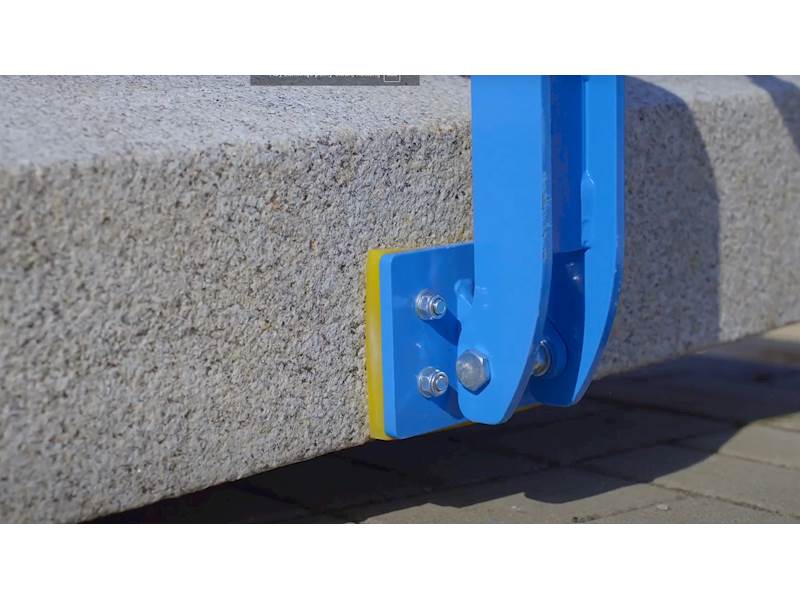Manipulační kleště na obrubníky. Kleště pro manipulaci s obrubníky, bloky, žulou, s hrubým i hladkým materiálem. Ruční i strojní manipulace. Vyměnitelné polyuretanové úchopy.