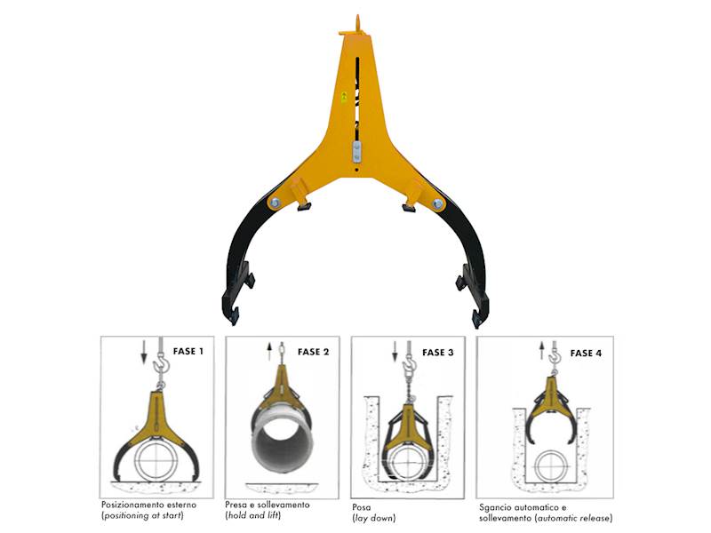 Kleště pro manipulaci s trubkami, rourami, kulatinou, válci apod. Poloautomat. Kvalitní provedení pro vysokou nosnost. Kleště usnadňují zvedat a usazovat těžká břemena. Certifikované zařízení.