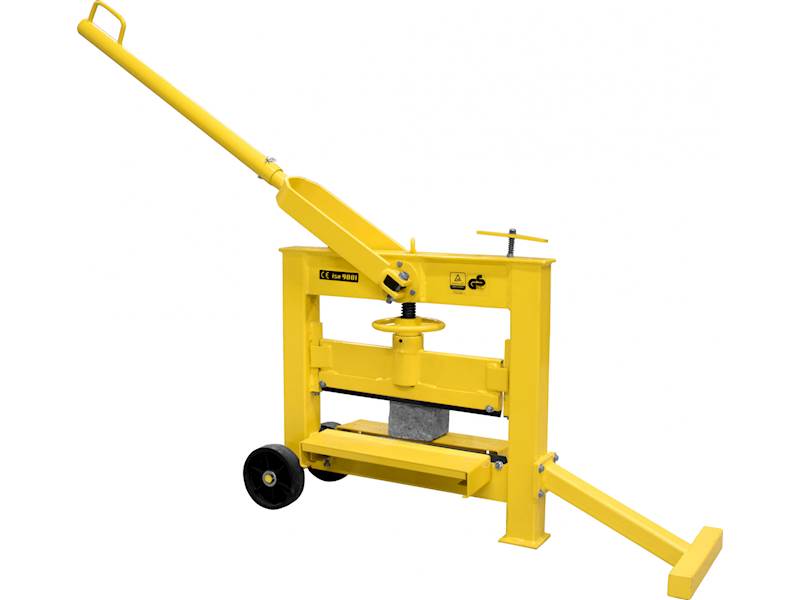 Páková lamačka, určená k dělení venkovní betonové dlažby. Rychlé a pohodlné lámání skladebné nebo zámkové dlažby, betonových desek atd. přesně na míru. Jednoduché seřízení výšky nožové lišty pomocí ručního kola; výměnné štípací nože se 3 břity. Konstrukce: masivní ocelový rám, 2dílná páková rukojeť, pružicí podložky lámaného materiálu, závěsný šroub, transportní kola. Celkové rozměry (d x š x v): 1.300 x 270 x 1.100 mm.