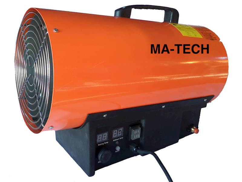 Ohřívání vzduchu na stavbách, vysušování vlhkých stěn, vytápění ve skladech, zemědělských objektech, obchodních domech, pracovištích, velkých stanech, dílnách apod.