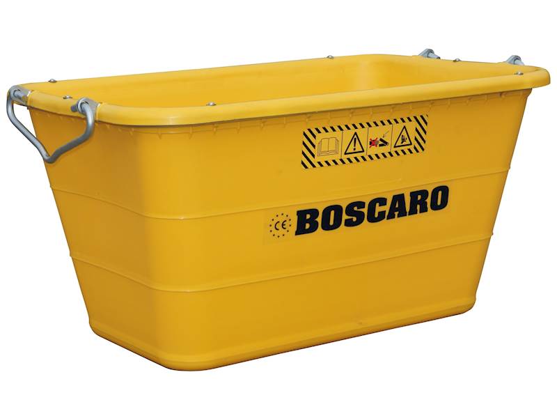 Víceúčelový kontejner Boscaro , typ M-20. Pracovní kontejner je vyroben z pevného odolného plastu, s kovovými rámem a uchy. Sabilní rám zajišťuje plnohodnotné zatížení. Možnost ručního úchopu, zavěšení na zdvihací zařízení, hydraulickou ruku,VZV apod.