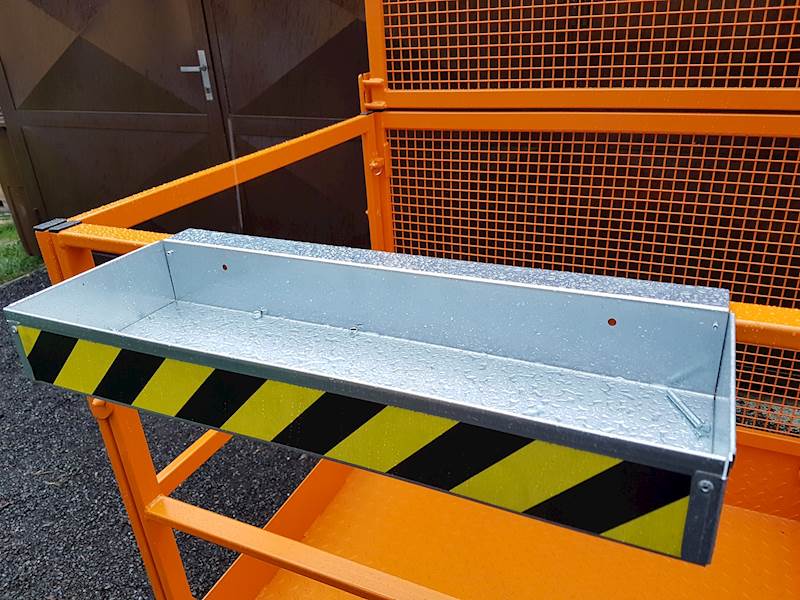 Pracovní koš lze složit na paletové rozměry a tím ušetřit skladové místo. Bezpečnostní prvky zajišťují plné pracovní nasazení. Revizní plošina je určena pro 2 osoby. Pro obslužné, údržbové a kontrolní práce. Plošina obsahuje veškeré bezpečnostní prvky. Německá výroba.