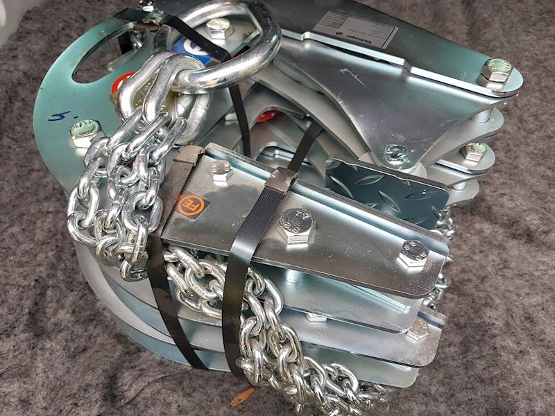 Sada kleště na skruže 1063 pro manipulaci se skružemi obsahuje 3x svěrku  a třípramenný vysokopevnostní řetěz. Ve variantách: