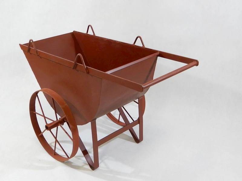 Japonka stavební je robustní konstrukce, je osazena čtyřmi oky pro snadné a bezpečné zavěšení na jeřáb či HR. Velka ocelová kola vozíku. Ideální pojezd na stavbu. Japonka, stavební vozík.
